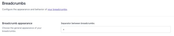Yoast SEO offers an easy way to add breadcrumbs to your WordPress site. If your theme supports Yoast breadcrumbs, the settings on the Breadcrumbs tab will be available. Here, you can determine what your breadcrumbs will look like. You can further customize the appearance for post types and taxonomies as well.