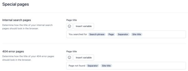 Here you will see some default templates for your internal search pages and your 404 error pages. You can change the templates and change the appearance.