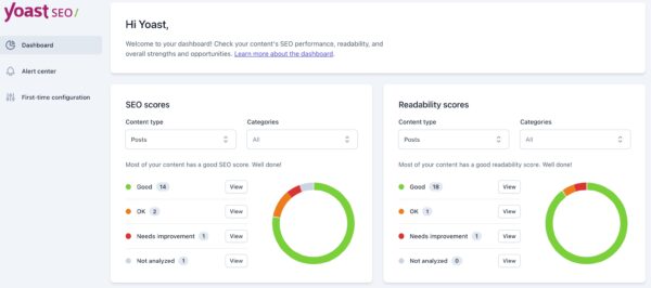 In the Alert center, you’ll receive messages about the potential problems that could affect your SEO scores, as well as notifications about Yoast SEO updates.