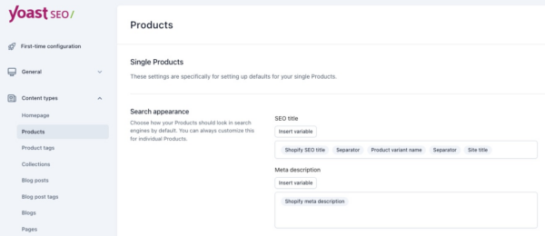 These are the settings for your individual product pages and provide a back-up. So, when you forget to add an SEO title or a meta description for an individual product, they will still look good in the search results. In general, we advise you to use the Google Preview settings in Yoast SEO for the best results.