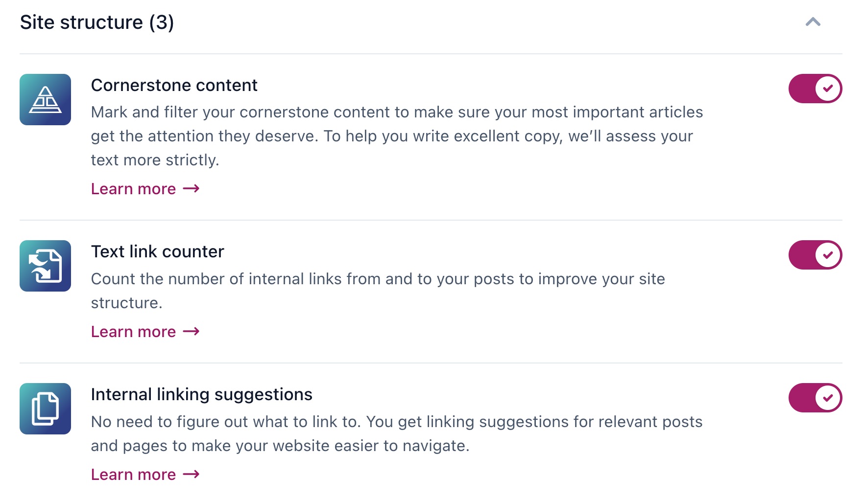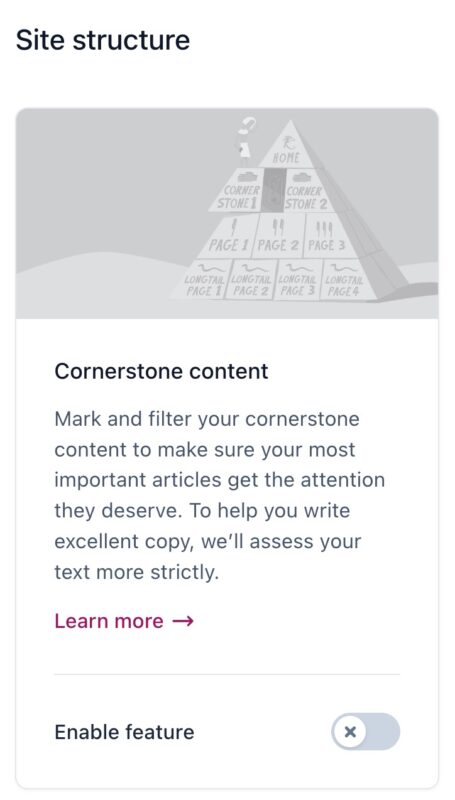 With Yoast’s cornerstone content feature, you can signal to search engines what pages are the most important on your website. This feature is enabled by default, but you can also choose to turn it off. In this article, we’ll explain how you can disable the cornerstone content feature.