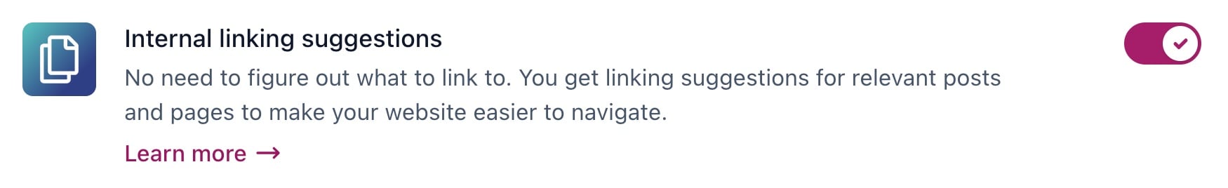 Yoast SEO Premium includes an internal linking tool. This link suggestions feature is enabled by default. Follow these steps to disable or enable the internal linking feature.