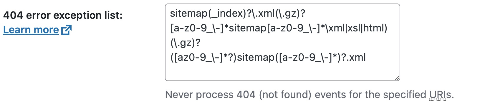 - Under 404 exception list, add the code below