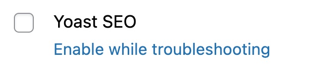 10. Next to Yoast SEO, click Enable while troubleshooting