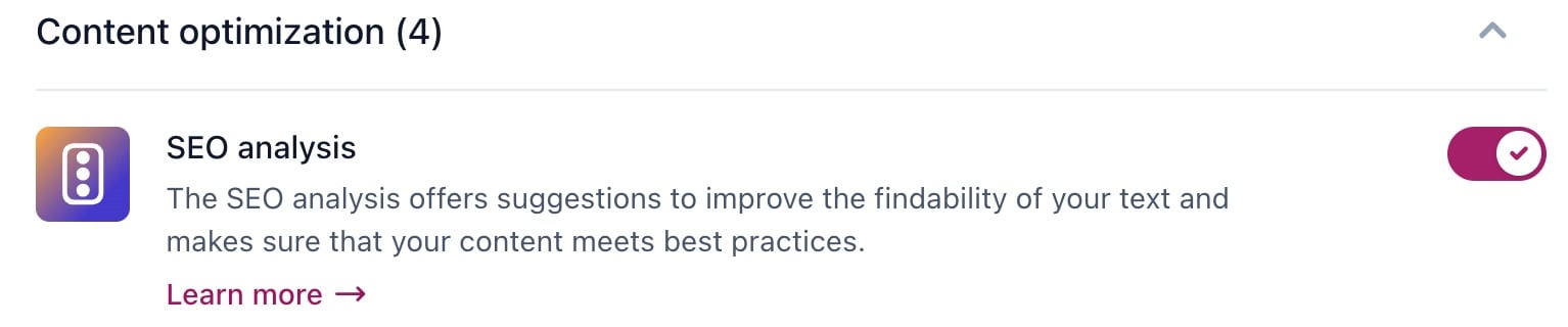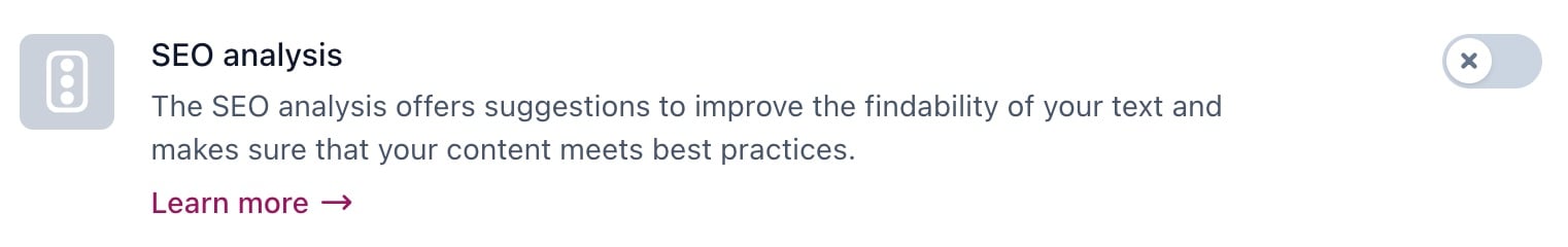 With Yoast SEO, you receive instant feedback about your writing. While we definitely recommend using the analysis, you can disable the SEO analysis site-wide or per user. This feature is enabled by default.