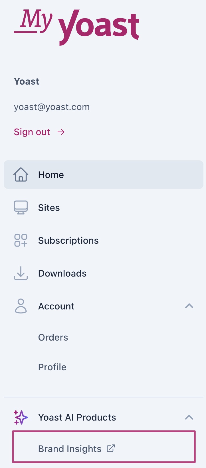 With Yoast AI Brand Insights, you can see how your brand is represented in AI answers. You can use this tool to see how your brand appears, and how it compares to competitors. In this article, we’ll explain where you can find Yoast AI Brand Insights, what information you should fill in, and how to run the brand analysis.