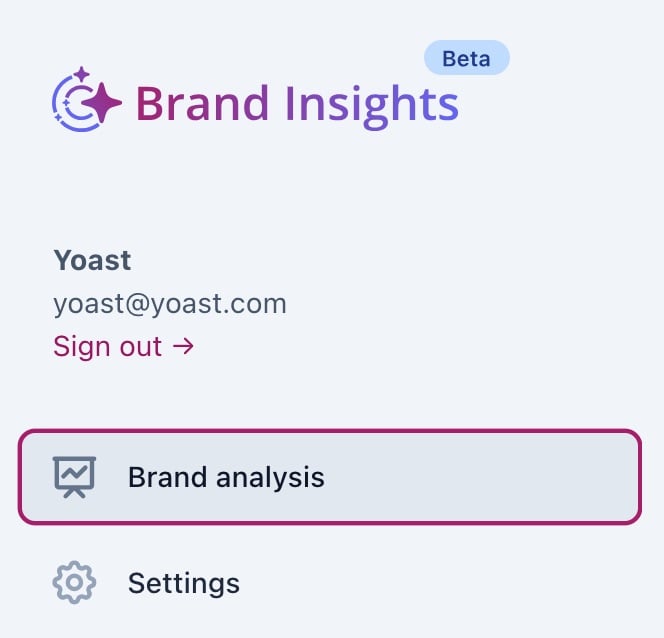 With Yoast AI Brand Insights, you can see how your brand is represented in AI answers. You can use this tool to see how your brand appears, and how it compares to competitors. In this article, we’ll explain where you can find Yoast AI Brand Insights, what information you should fill in, and how to run the brand analysis.