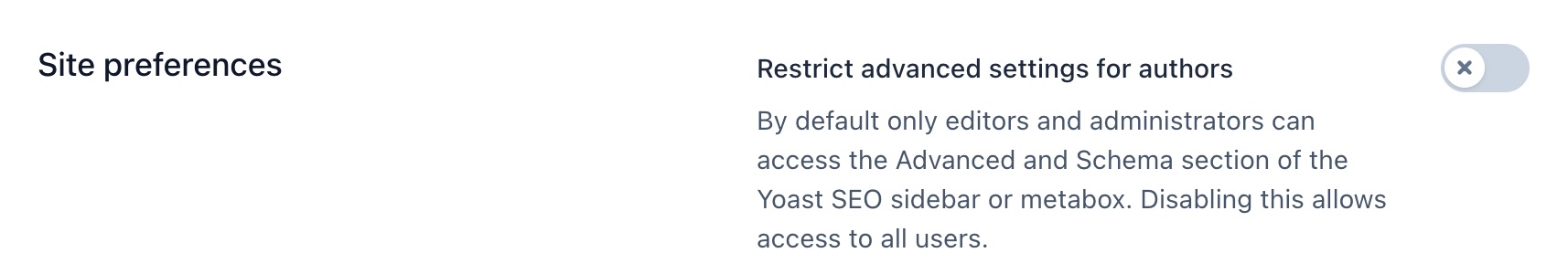 - Under Site preferences, toggle Restrict advanced settings for authors to Off