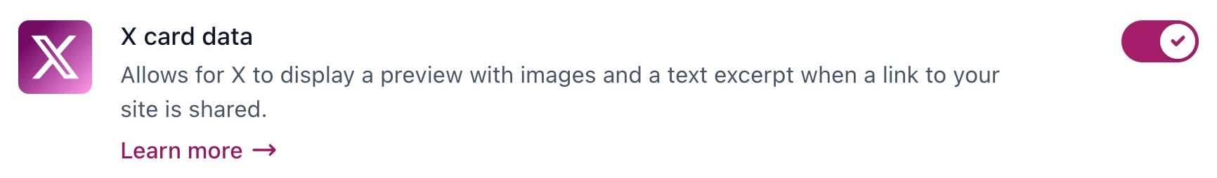 - Under Social sharing, enable X card data
