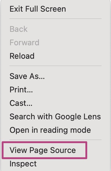 Once you are viewing the source code, sometimes you may need to search for a tag. You can do this by finding the search function of your Chrome or FireFox browser.