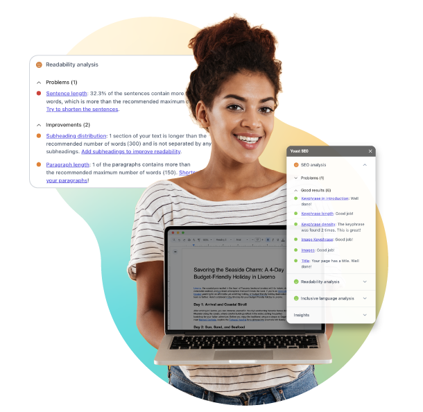 With the Yoast SEO Google Docs add-on, you get instant analysis on SEO, readability, and inclusivity as you write. There’s no need to switch platforms or check Yoast SEO on your CMS for feedback.