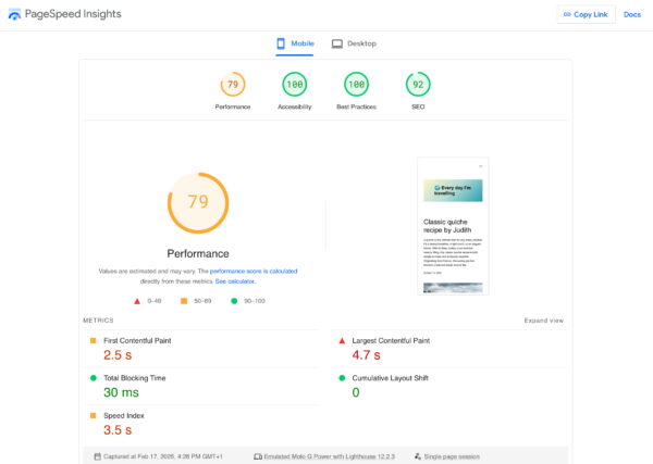 To underscore the importance of performance, Google launched the Core Web Vitals. These metrics help site owners gain insights into how their sites perform in real life and get tips on improving those scores. The metrics focus on loading times, interactivity and stability. Together, these determine how enjoyable users find your site. It’s easy to run a test, and you’ll get quality feedback about your site.